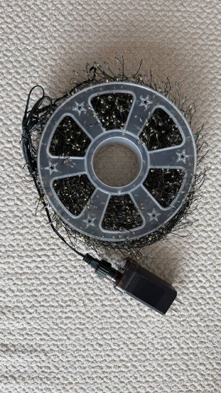 Длинная (8 м) гирлянда, разноцветная (красный-синий-зеленый-желтый), дополнительно еще украшена НГ шариками - 15 лари