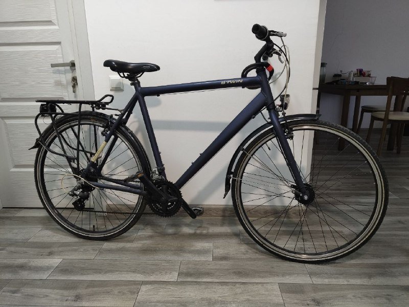 Удобный, не тяжелый, в хорошем состоянии, тормоза работают, 2 замка(1 блокирует заднее колесо, встроен, а второй обычный шнур), фара работает(Динамо), 6 режимов скорости, есть держатель для телефона