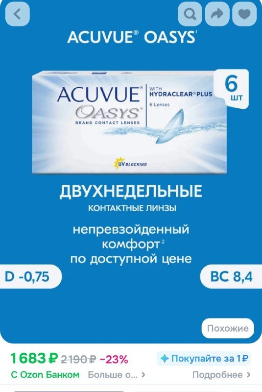Линзы Ежемесячные (6 штук) новые закрытые, срок годности до 2030
