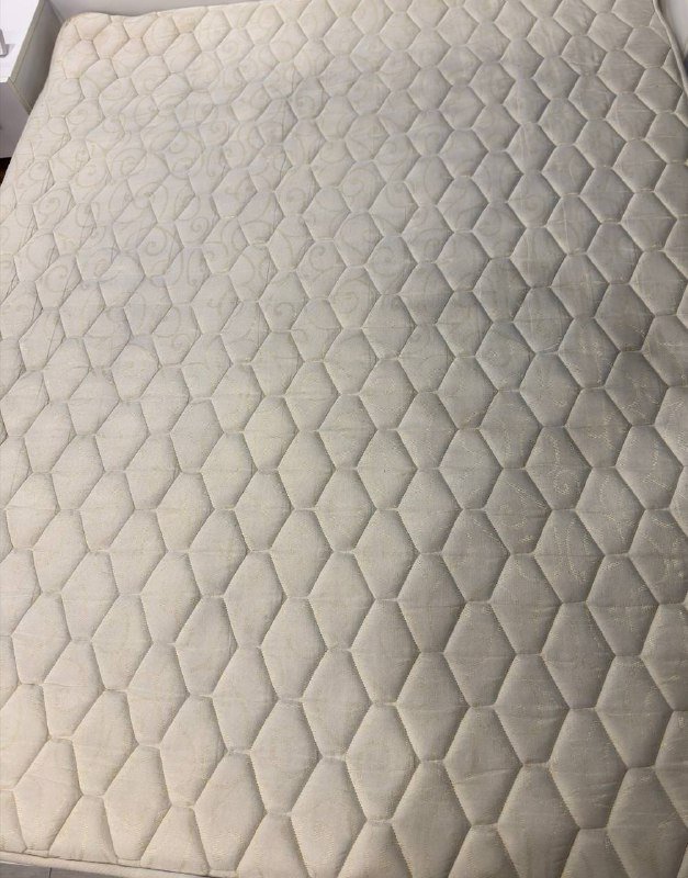 Удобный, практичный, и на полу спать будет комфортно, высота 12 см, пружины средней жёсткости. Использовался с наматрасником, без пятен, без запахов, из-за пружин не продавливается в принципе. Чехол на молнии, стирается как обычное белье, в машинке. С одной стороны белого цвета, с другой темно серого.