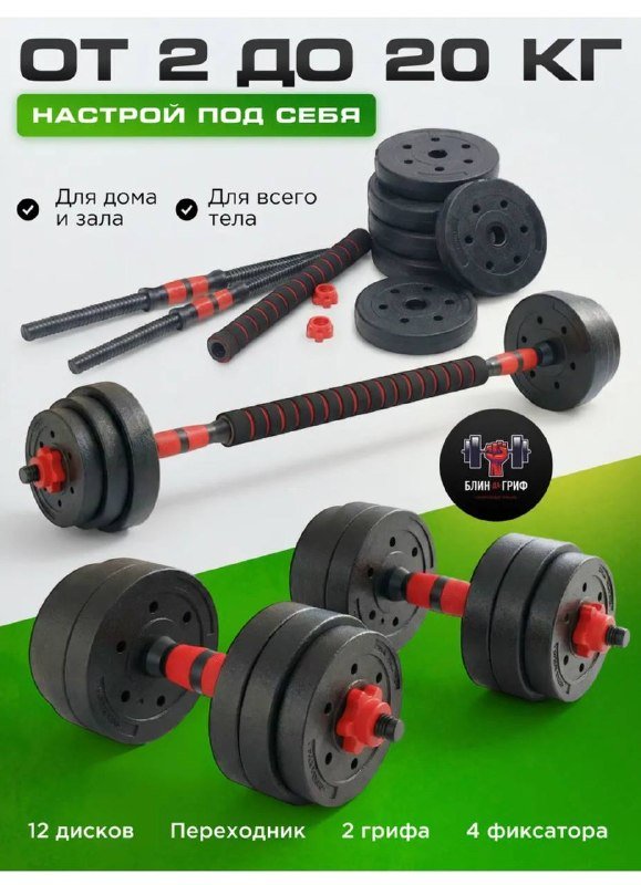 30 кг (15+15) — (8 шт блин 2,5 кг, 4 шт блин 1,5 кг, 4 шт блин 0,5 кг, 2 шт оси гантели 1.100 кг, 4 шт держатель 0,200 г.). Нюанс сломана крышка. Цена 250лари