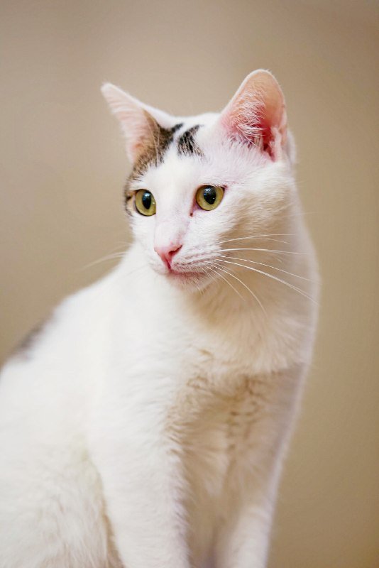 Орнелла, 1 год - белая с табби, нежная трогательная кошечка, ласковая и контактная. У Орнеллы редкая форма зрачка в одном из глаз, что делает ее по-своему уникальной.