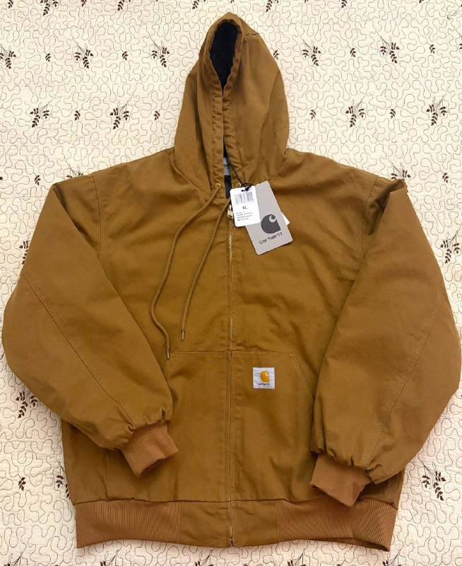 〰️ Рабочая куртка с капюшоном и подкладкой Carhartt Active Jacket J130 (реплика), коричневая, размер XL - 140₾