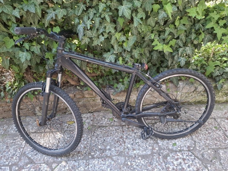 Trinx (წითელი) — მსუბუქი ალუმინის ჩარჩო, სიჩქარეები და მუხრუჭები მუშაობს, პედლები ახალია. საჭიროა მხოლოდ 2 საბურავი (50–60 ლარი), საჯდომის მილი და საჯდომი. ამორტიზატორი აქვს, უბრალოდ მოვლა სჭირდება.