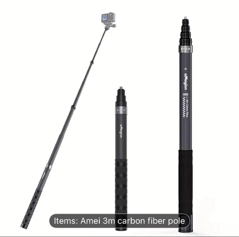 A Carbon Fiber Invisible Selfie Stick Suitable for Gopro, DJI, Insta360, Akaso Brave, And Campark.