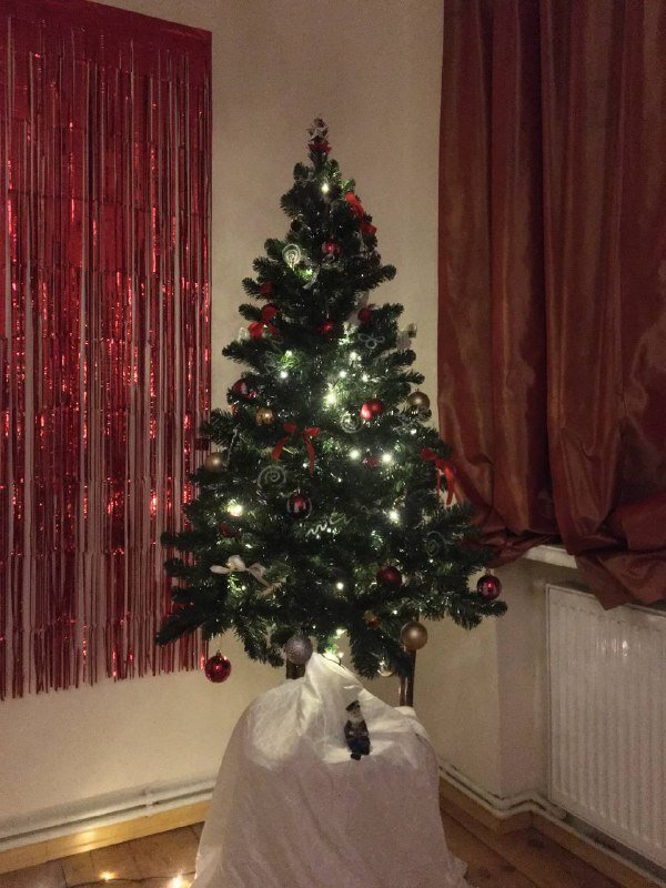 Отдам бесплатно искусственную елку из JYSK вместе с гирляндой.
