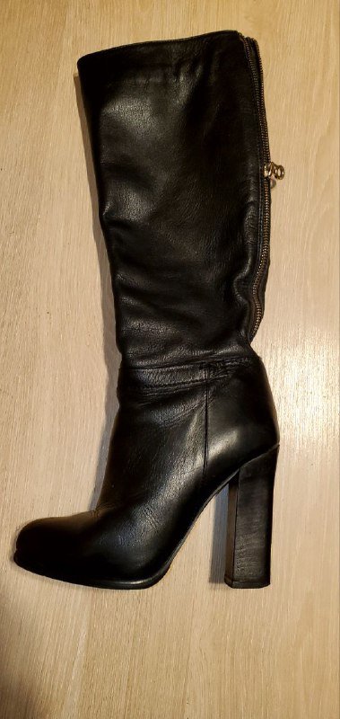 кожаные сапоги темно коричневого цвета в хорошем состоянии (дефекты на фото)