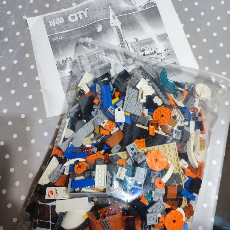 Набор разобран, все детали на месте. Коробки и инструкции нет (есть на оф сайте Лего)