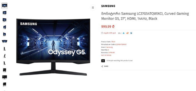 Монитор Samsung 27″ Odyssey Gaming G5 (LS27DG502EIXCI) QHD 2560×1440, IPS, 180 Hz