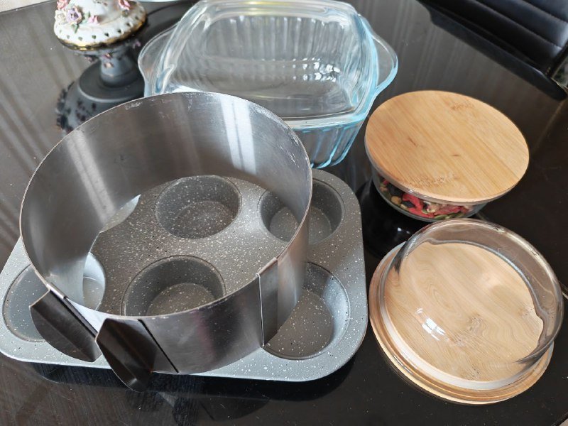 Набор посуды (форма для,запекания, пивные кружки, пара многоразовых стаканов стараюсь, бутылка для воды, подсвечник, два стеклянных контейнера и 5 пластиковых). Всё за 50 лари. Стеклянные контейнеры в идеальном состоянии. На вазе есть незаменимый скол. Всё остальное в хорошем состоянии.