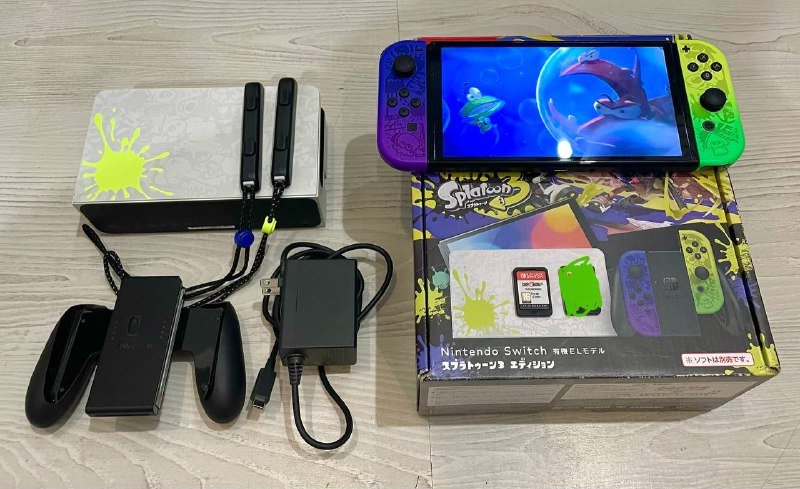 Полный оригинальный комплект: консоль, зарядное устройство, адаптер для джойстиков, накладки на джойстики, hdmi кабель, коробка и картридж с игрой