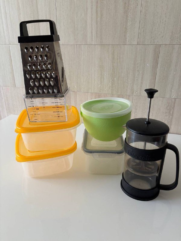 Ножи, Терка, веретено для меда, толкушка для пюре, дуршлаг.