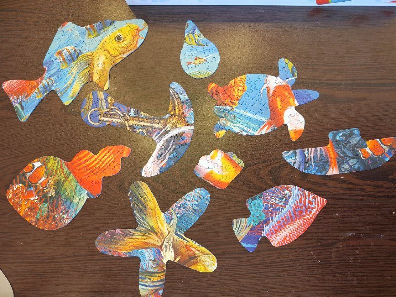 Классный интересный пазл, хорошее качество печати и картона. Все детали на месте (есть фото в собранном виде). Интересная вырубка элементов, нужно привыкнуть и понять как систематизировать элементы ;)