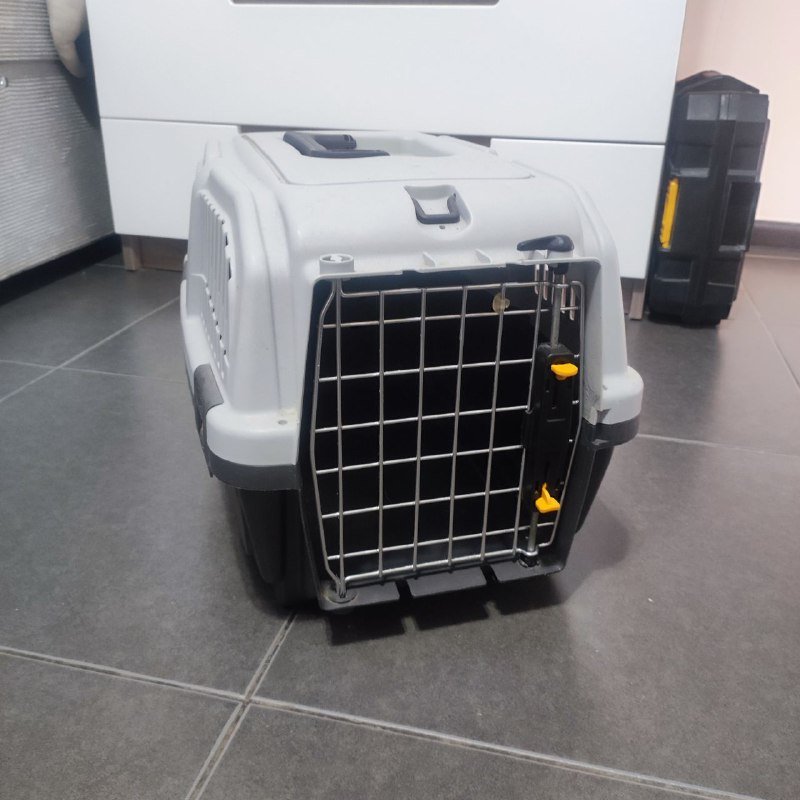 Переноска SKUDO 1 48х31,5х31h см с металлической дверцей с замком серая, б/у в хорошем состоянии. Есть 2 шт, использовались для здоровых йорка 2,5 кг и кошки 2,4 кг