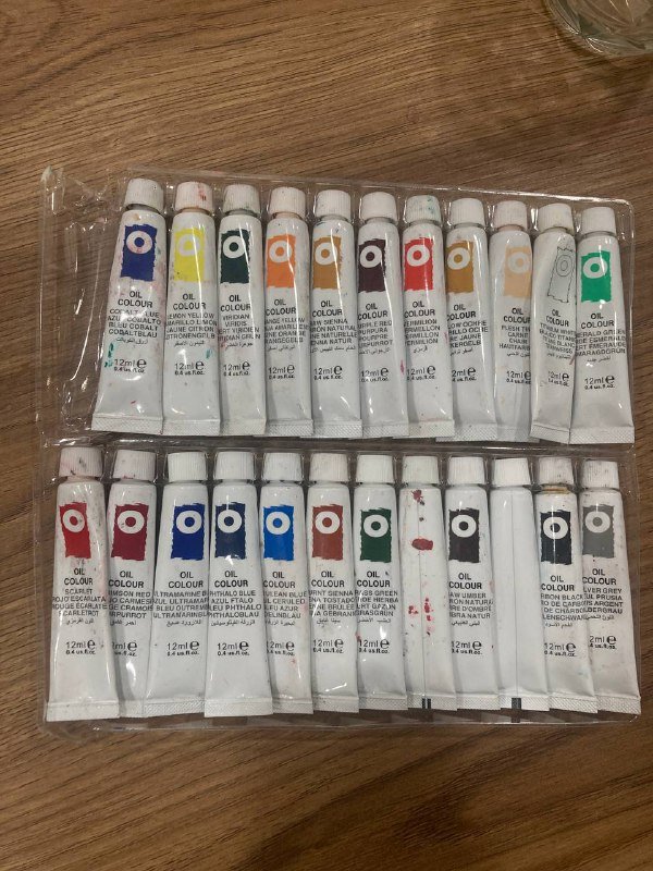 2. Масляные краски. Полные тюбики по 46мл — по 10₾. Все вместе – 30₾.