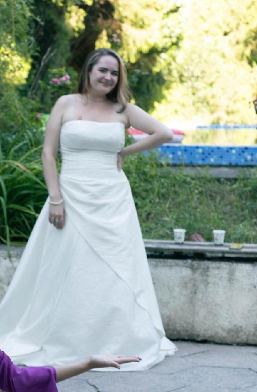 В прекрасном состоянии, после химчистки. Покупала новым в салоне в Минске на свою свадьбу за 800$ (одевалось один раз).