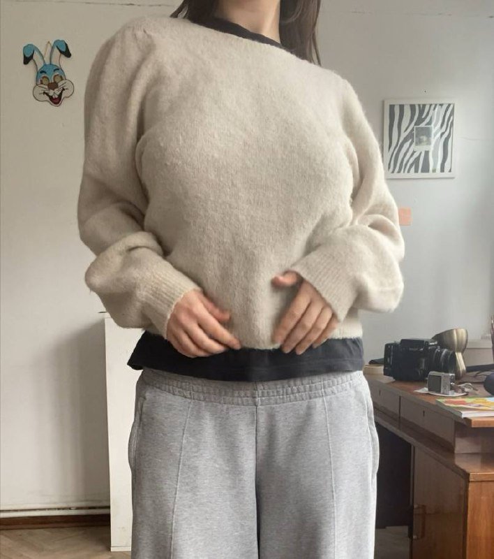 40 альпака суперфайн, 20 меринос, 25 акрил, 15 полиамид. очень легкий приятный к телу свитер оверсайз, не скатывается. возможно легкое растяжение, но после стирки форма восстанавливается
