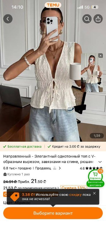 3. Вязаный топ, цвет слоновая кость — 7 лари.
