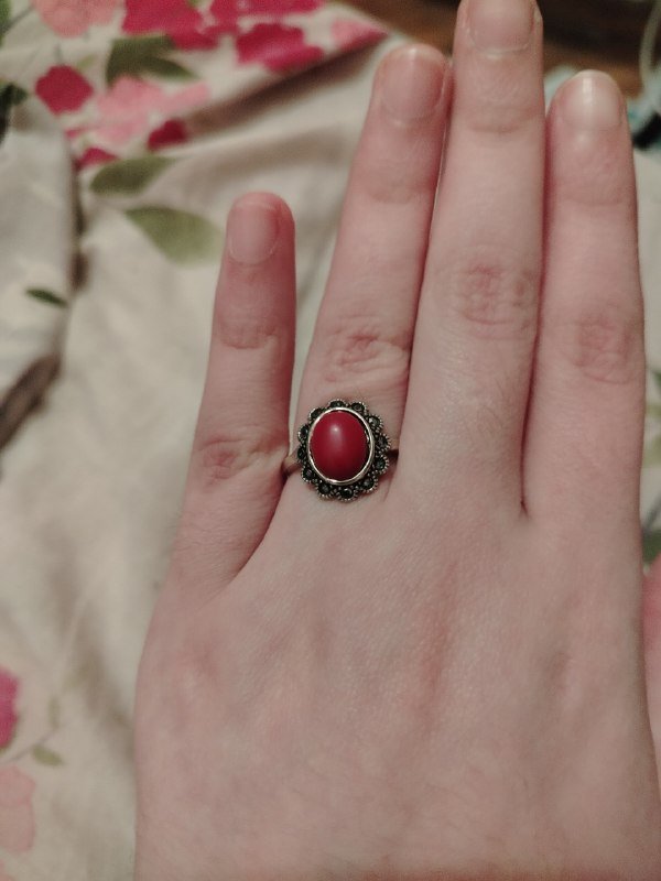 Серебряное кольцо с кораллом 19 размера