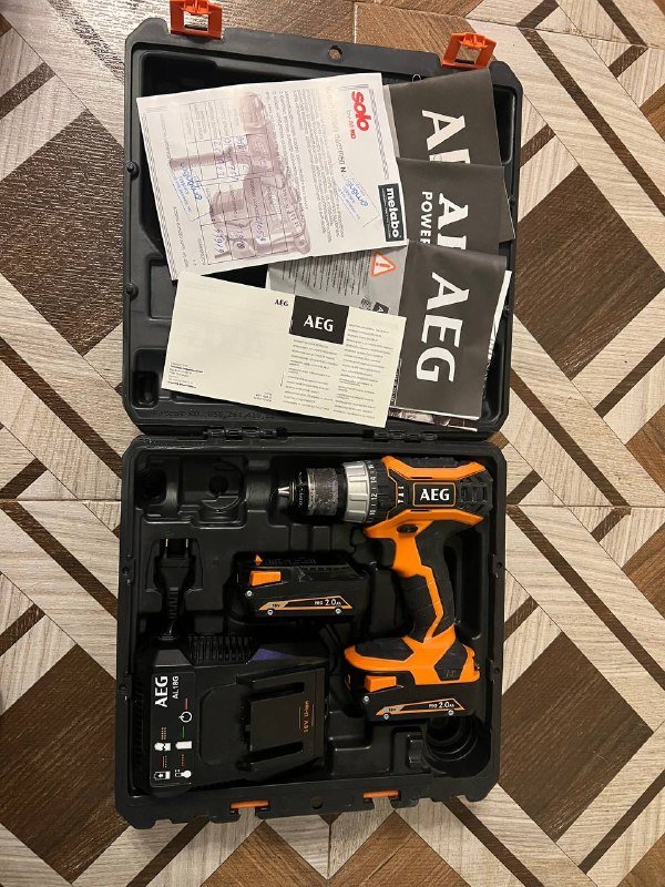 Аккумуляторный шуруповерт AEG BSB18C2 в кейсе с битами и зарядкой