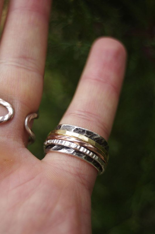 Кольцо спиннер из серебра, меди, латуни, размер 18