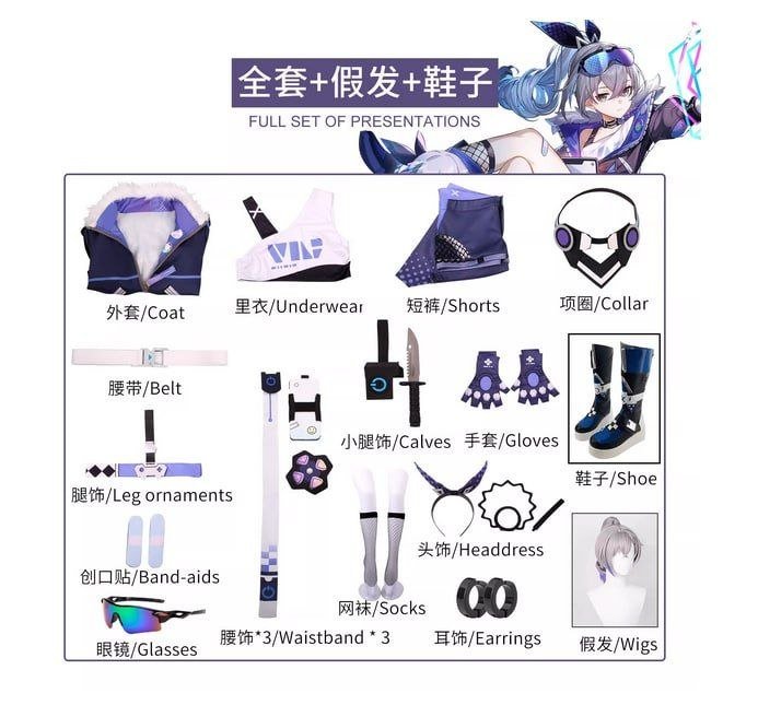 Косплей комплект Silver Wolf из Honkai Star Rail с обувью, париком и аксессуарами