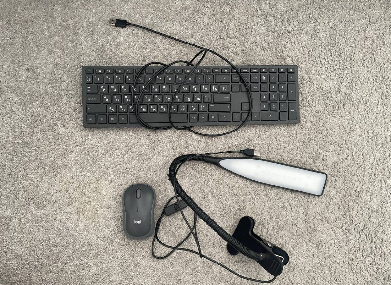 Беспроводная мышка Logitech, клавиатура HP, USB Лампа