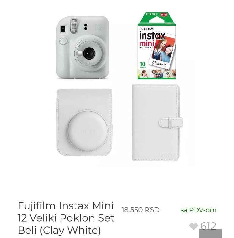 Fujifilm Instax Mini 12 Polaroid Camera Set, White