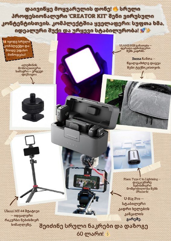 Комплект для создания контента с микрофонами, подсветкой и аксессуарами
