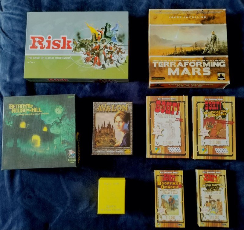 Betrayal at House on the Hill, Risk, Terraforming Mars, Avalon, Бэнг, Колода Долго и счастливо