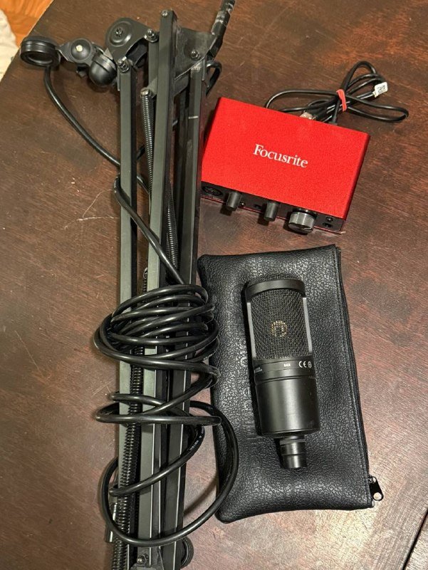 Микрофон AUDIA-TECHNICA AT2020, аудиоинтерфейс Focusrite Scarlett Solo