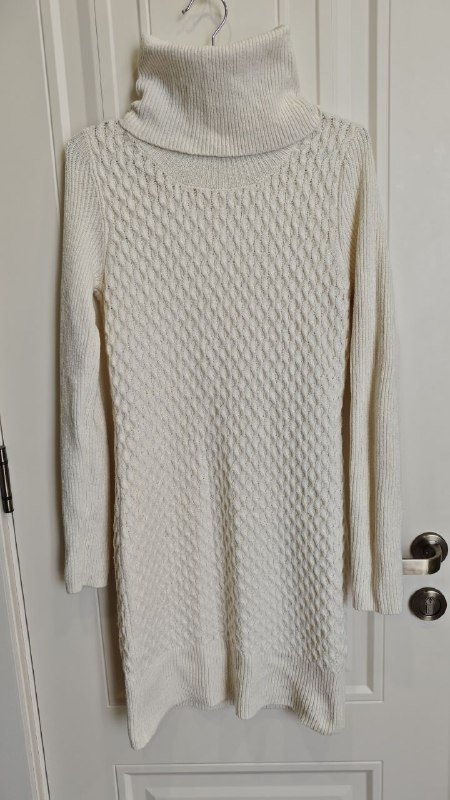 Белое вязаное платье с высоким воротом