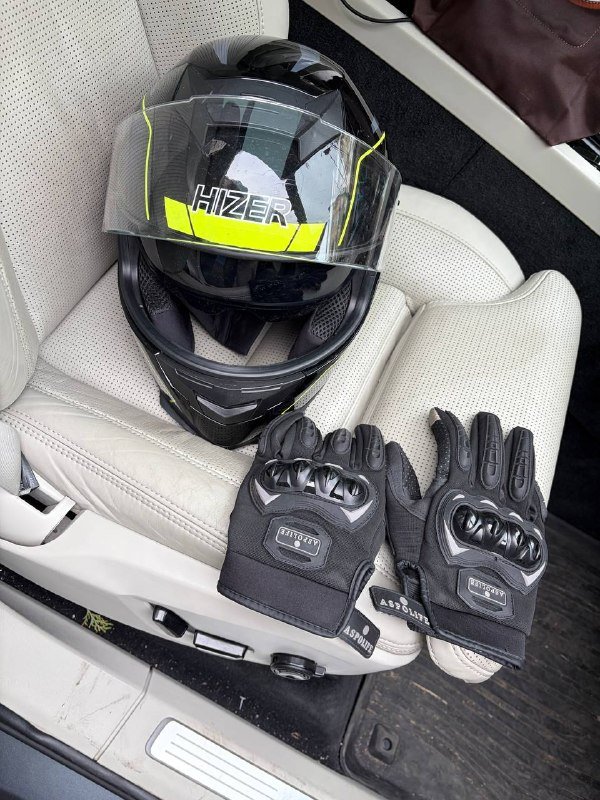 Мотошлем и перчатки размер XL 61-62