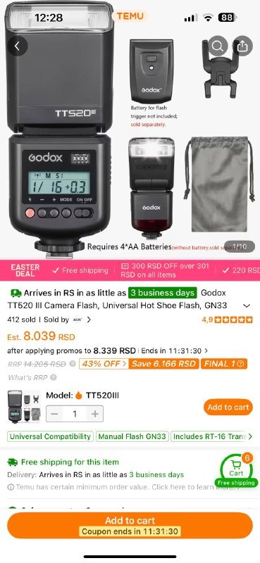 Вспышка Godox TT520 III