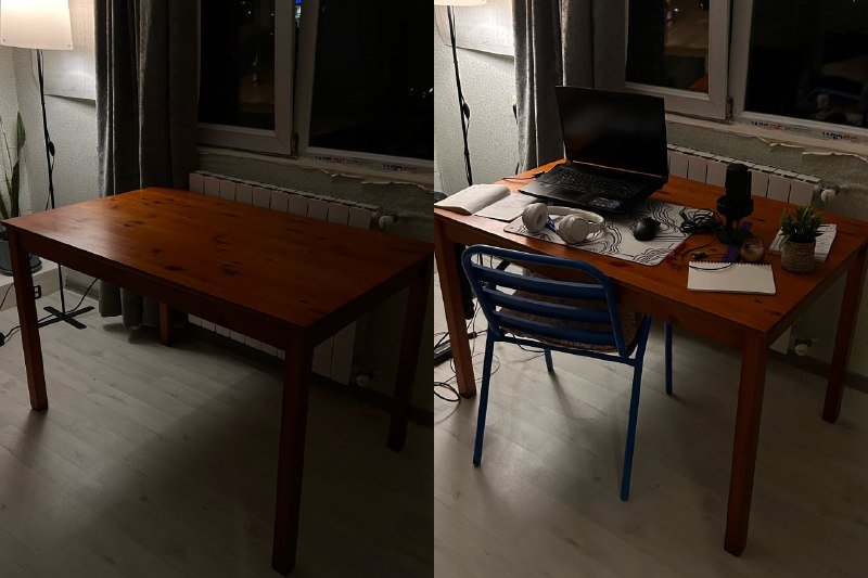 Темный стол, светлый стол, стеллаж, журнальный столик