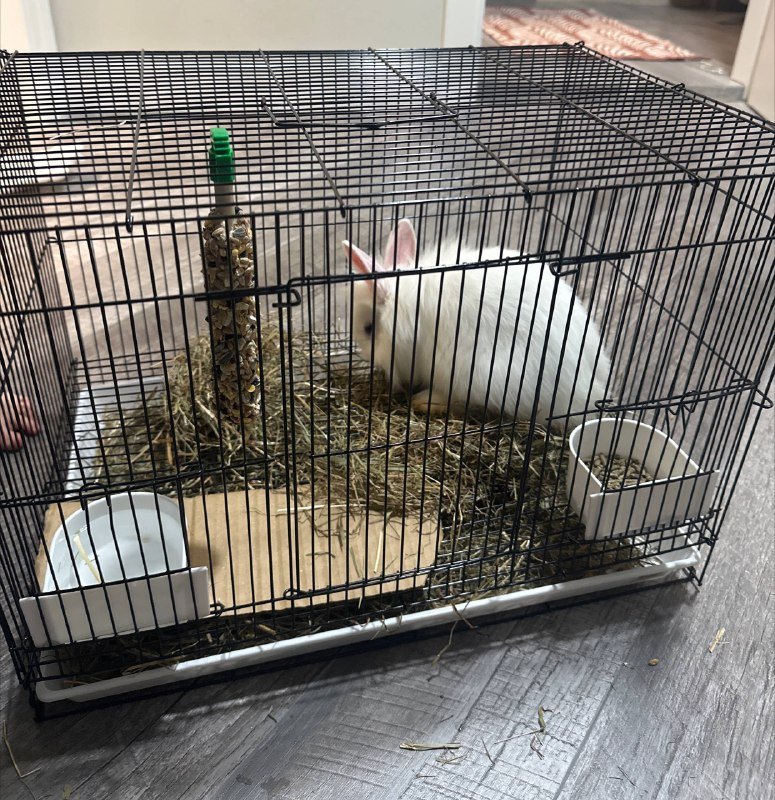 Кролик с клеткой, лежаком, кормом и аксессуарами
