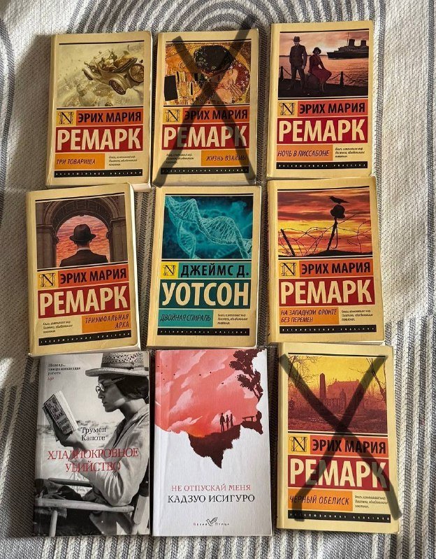 Книги Эрих Мария Ремарк, Джеймс Д. Уотсон, Трумен Капоте, Кадзуо Исигуро
