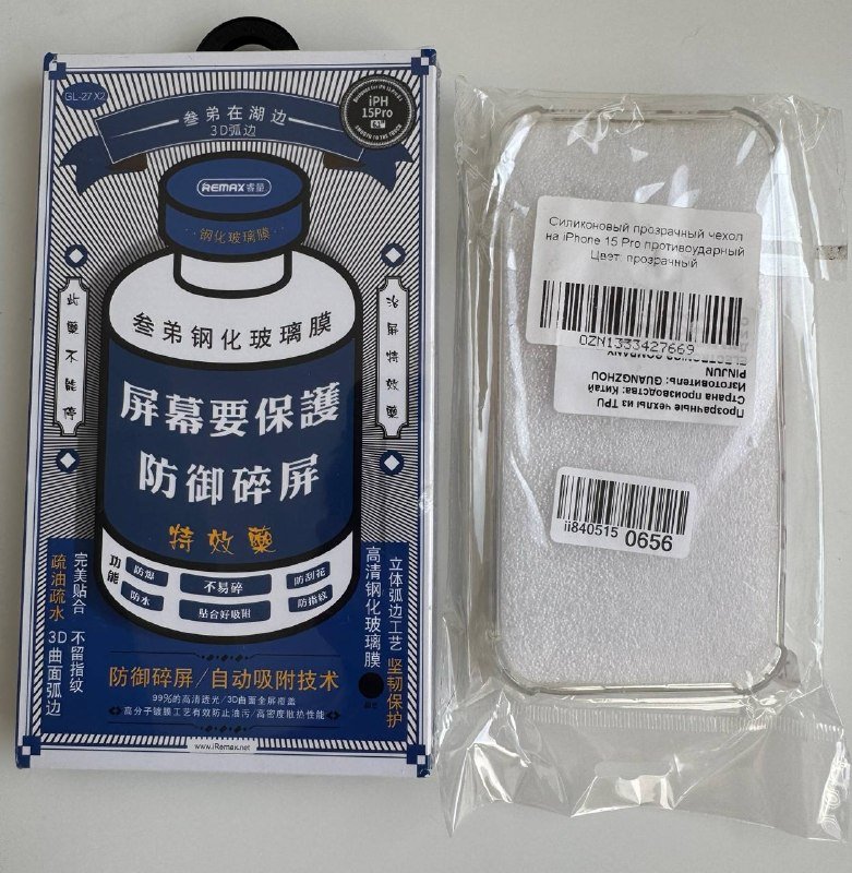 Защитное стекло и прозрачный чехол на iPhone 15 Pro