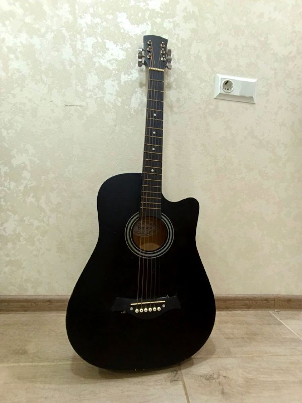 Акустическая гитара с чехлом и каподастром