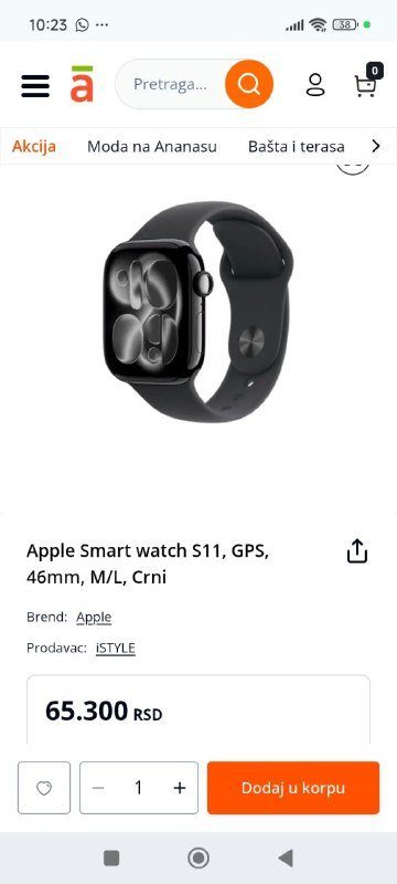 Apple Smart watch S11, GPS, 46mm, M/L, black