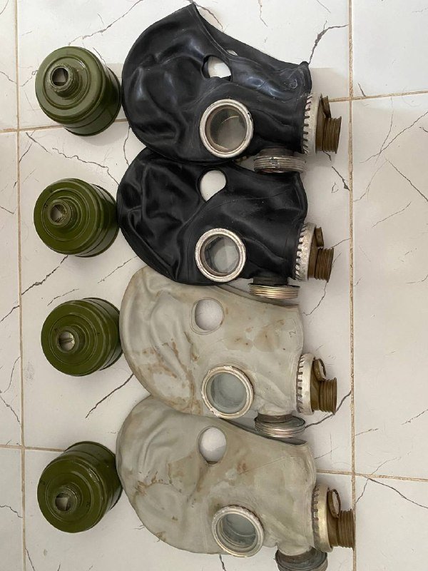 противогазы ГП5М новые, советские аптечки АИ 2 с тюбиками