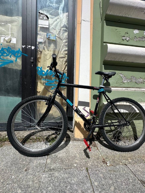 велосипед с жёсткой вилкой с фонариком и велозамком