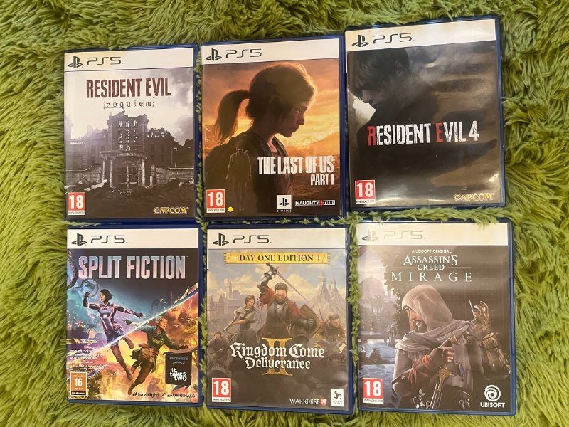 Диски PS5, Resident Evil 4, Mirage, Last of Us, Split Fiction, KCD2, Requiem