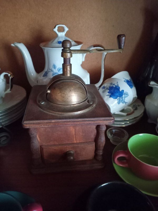 An antique coffee grinder